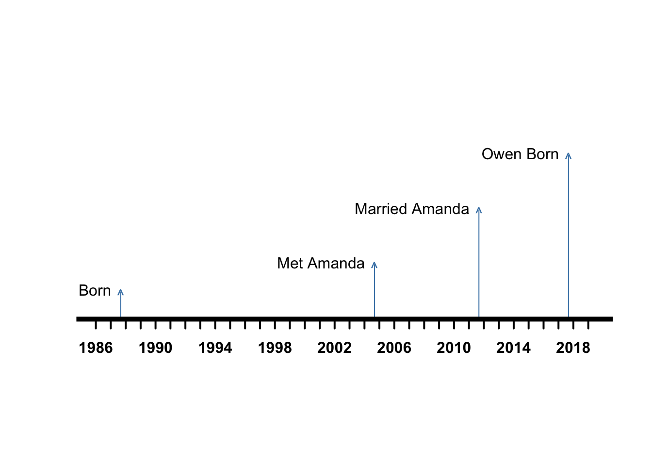 labels = c("Born", "Met Amanda", "Married Amanda", "Owen Born"),